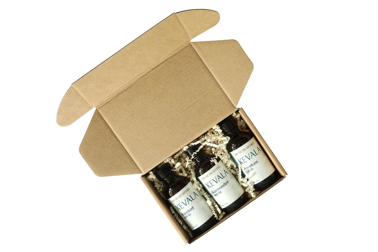 Featuring three skin nourishing body oils from Kevala’s Ayurvedic inspired line of body care products, this set is a great gift for anyone interested in exploring this ancient herbal tradition. The oils included are carefully crafted to bring the healthful qualities of botanicals to soothe mind, body, and spirit. Surrender body oil has sweet floral notes with woody resin undertones. Awaken body oil balances citrus, woody, minty, and herbaceous aromas. Rooted body oil offers a rich woody scent with sweet rose and tangerine aromas. Each set contains one 2 oz. bottle of the three oils.
